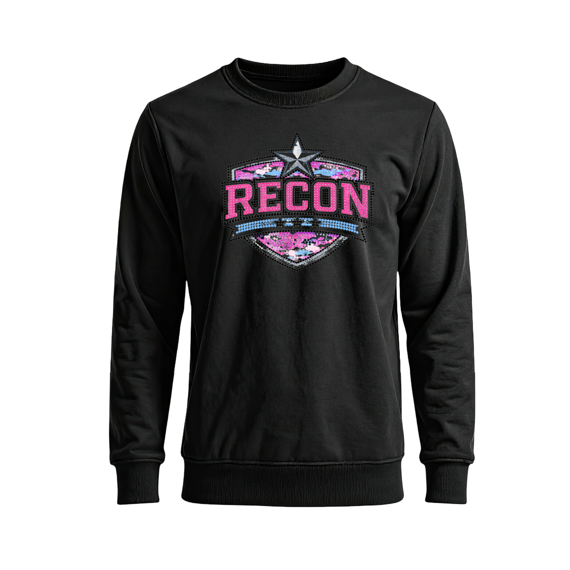 Design shown is a digital mockup. Your item will be made with real, heat-pressed rhinestones. Stone size, spacing, color, and placement may vary slightly.